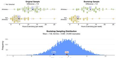 Create and visualize, step-by-step, the bootstrap distribution for the divergence of means or medians . Obtain summary statistics (such as percentiles) of the bootstrap distribution and observe a percentile conviction interval.