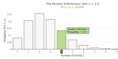 Explore how the shape of the Poisson distribution depends on the parameter λ (the mean). Observe and visualize probabilities of various kinds.